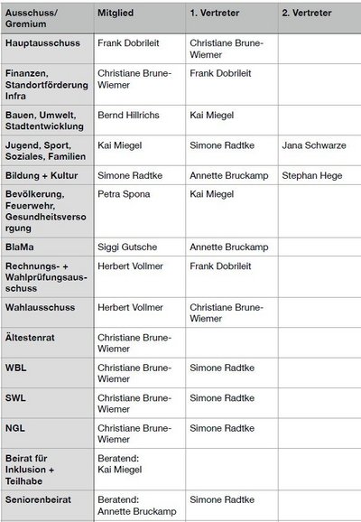 Und hier die Tabelle mit unserer Ausschussbesetzung: