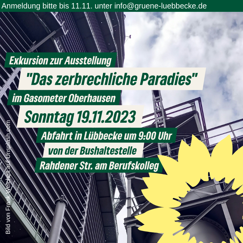 Eine Anmeldung ist bis zum 11. November 2023 unter der E-mail-Adresse info@gruene-luebbecke.de zwingend erforderlich.