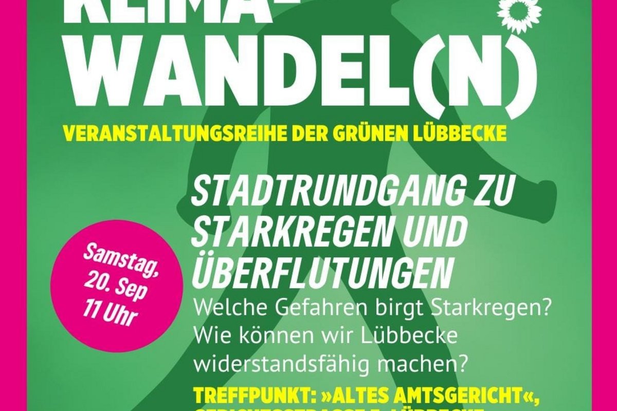 Immer häufiger und intensiver führen Starkregenereignisse in ganz Deutschland zu Überflutungen mit teils gravierenden Folgen. Auch Lübbecke ist davor nicht gefeit. Unter dem Titel „Klimawandel(n) – Starkregen & Überflutungen“ lädt Bündnis 90/Die Grünen Lübbecke zu ihrem dritten Stadtrundgang ein, bei dem die lokalen Auswirkungen des Klimawandels im Mittelpunkt stehen.