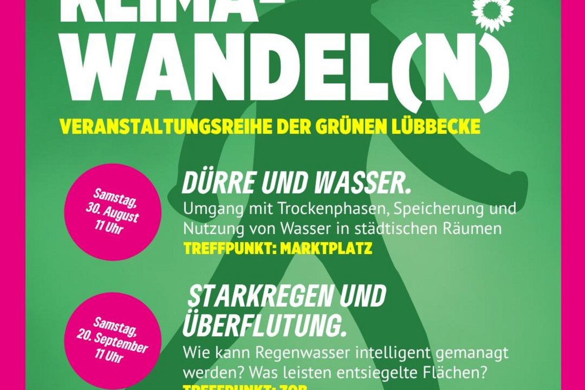 Am Samstag, 30. August, laden Bündnis 90/Die Grünen Lübbecke im Rahmen der Veranstaltungsreihe Klimawandel(n) zu einem weiteren Stadtspaziergang ein. Diesmal steht das Thema »Dürre und Wasser« im Mittelpunkt. Treffpunkt ist um 11 Uhr auf dem Marktplatz.